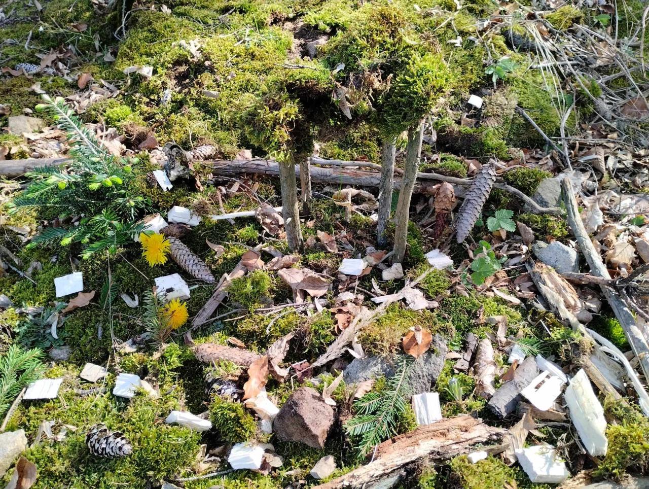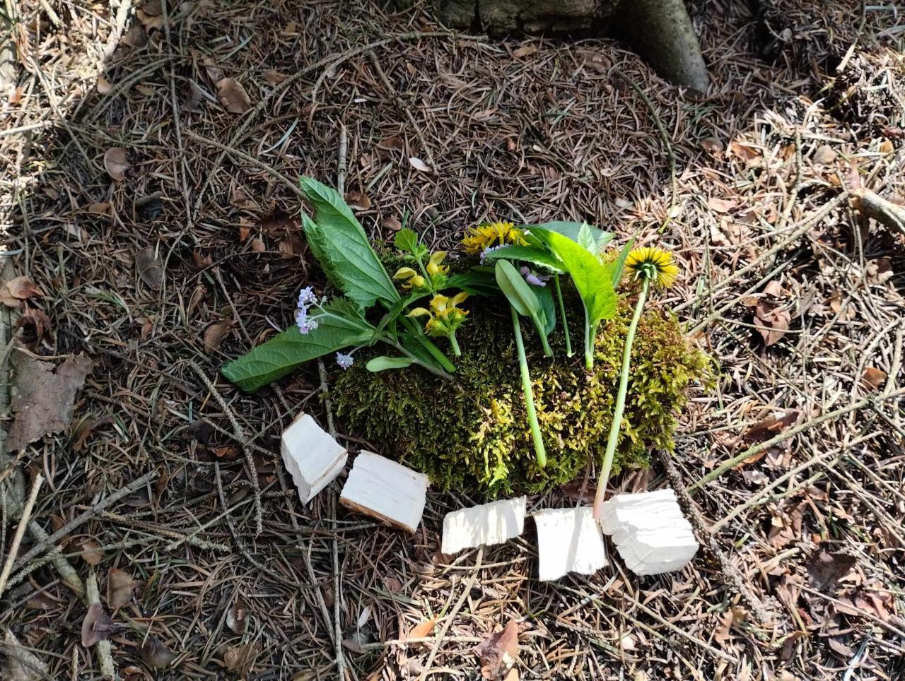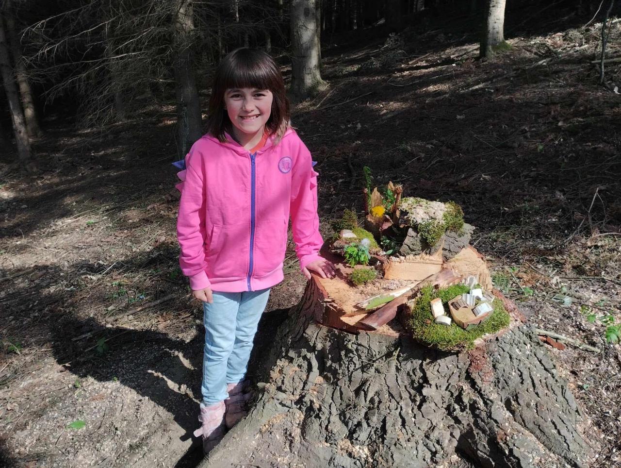 Krásné jarní tvoření využili žáci s paní uč. Ulrychovou k tvoření z přírodnin-stavěli domečky pro lesní skřítky