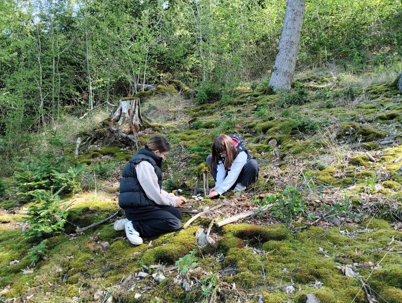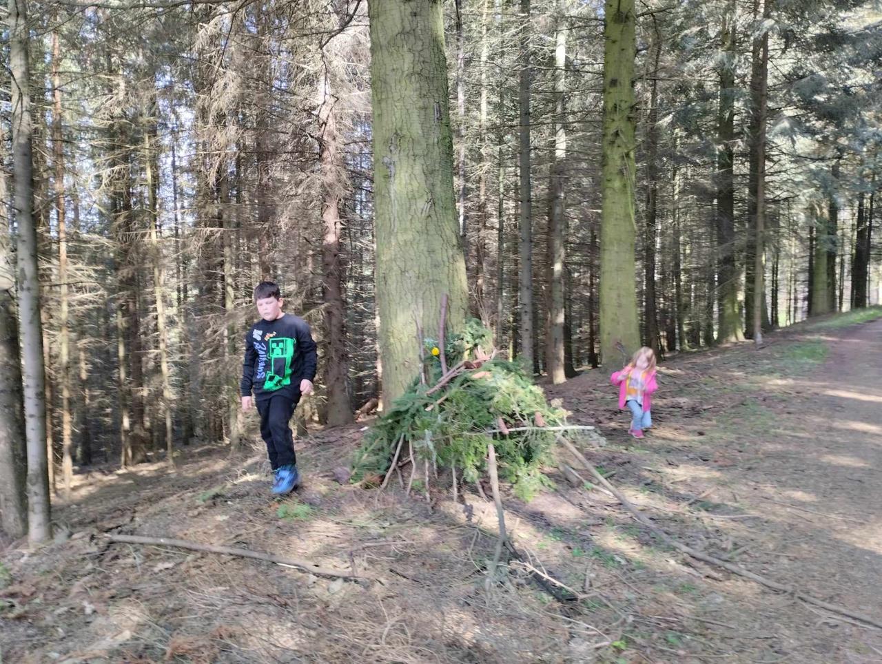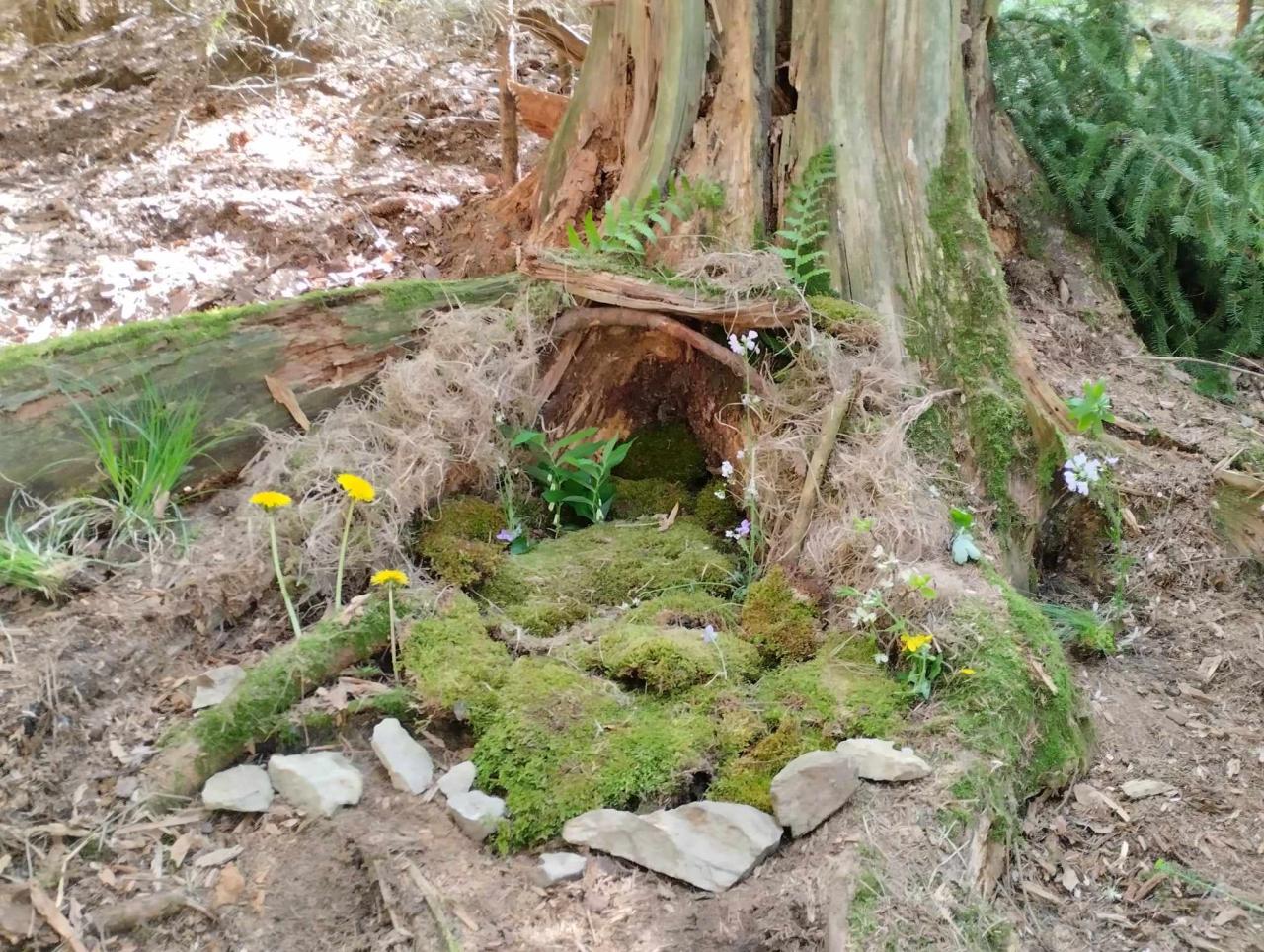Krásné jarní tvoření využili žáci s paní uč. Ulrychovou k tvoření z přírodnin-stavěli domečky pro lesní skřítky